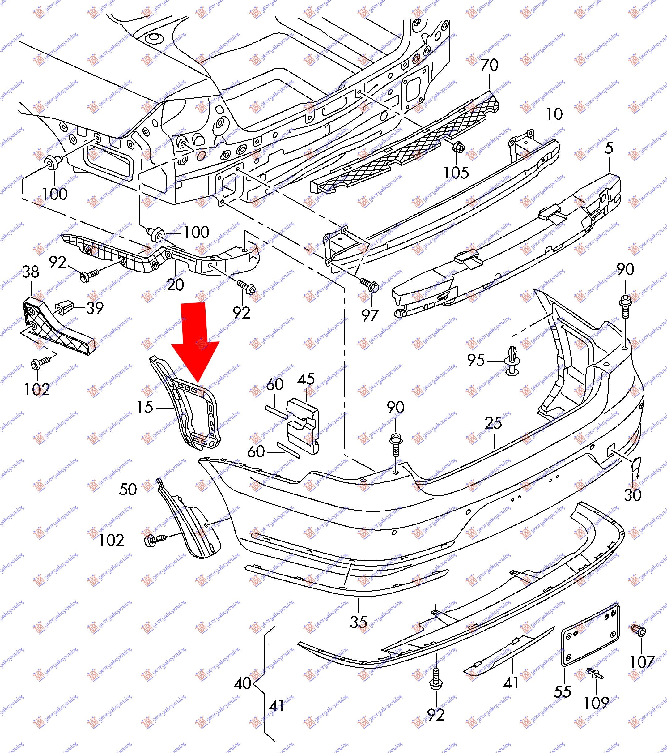 Страничен държач задна броня (пластмасов)